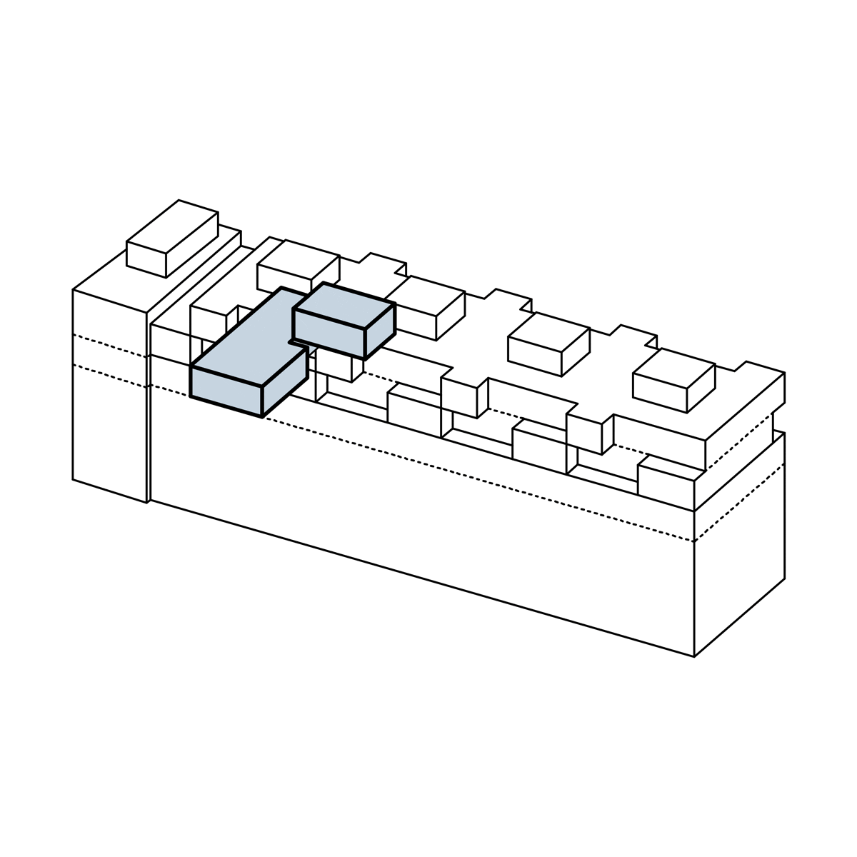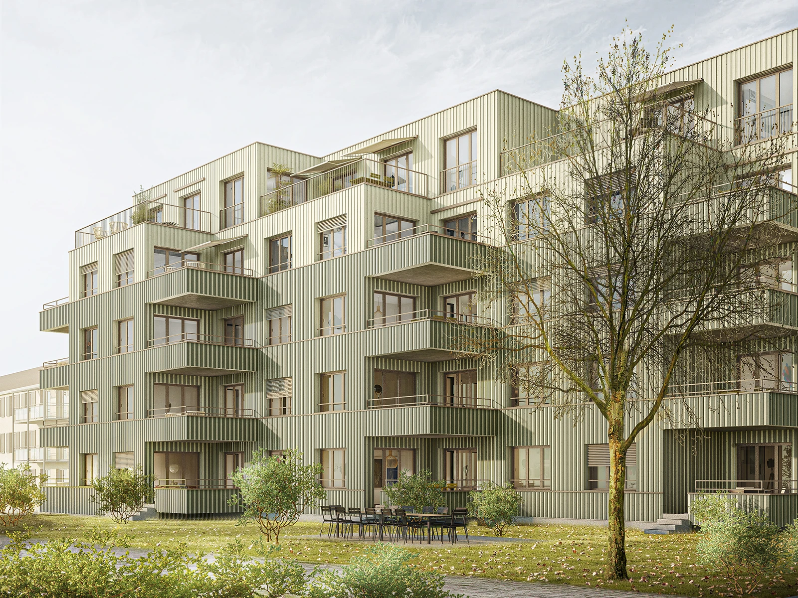 The characteristic urban morphology of the Heuried residential district was established in the 1940s post-war building boom, when perimeter developments transitioned to housing blocks, providing park-like residential settings. The intervention's typology embodies an essentially linear design.