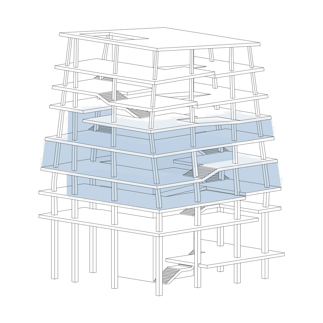 This interior fit-out for On reflects the architectural logic of the building as a whole and forms a spatial link between the two different worlds of product development housed within: the “lab”, which occupies the structure’s four-storey base, and the “neighbourhoods” above, where marketing, logistics, and sales activities take place.