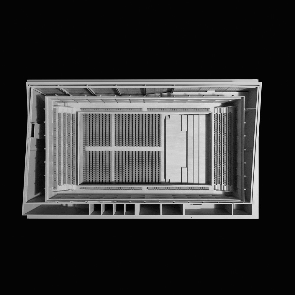 A concert hall constructed from simple and inexpensive spruce wood was inserted as a wooden box in a former production hall. In the intermediate area outside the wooden vessel and within the industrial building’s walls, visitors see the raw and honest character of the elementary wooden construction.