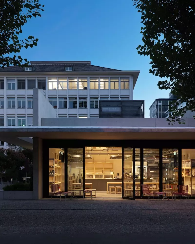 The Radiostudio Brunnenhof complex, located in Zurich Kreis 6, was built in two phases: the first by Otto Dürr and the second by Willy Rost and Max Bill. With the neighborhood experiencing rapid transformation, there's an increasing demand for educational spaces. Switzerland's first radio studio will be converted into a secondary school and an educational music center.