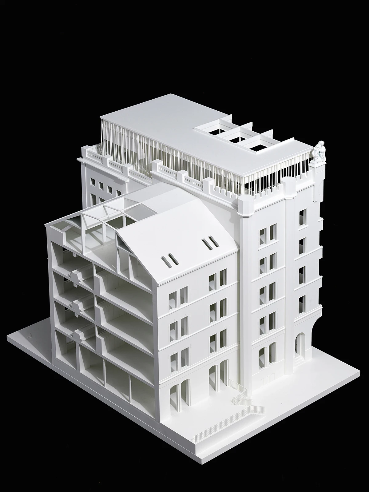 Through this intervention, the main building, the ancillary building, and the new basement are merged into one unit, while at the same time, the independent expression of the individual parts is strengthened.