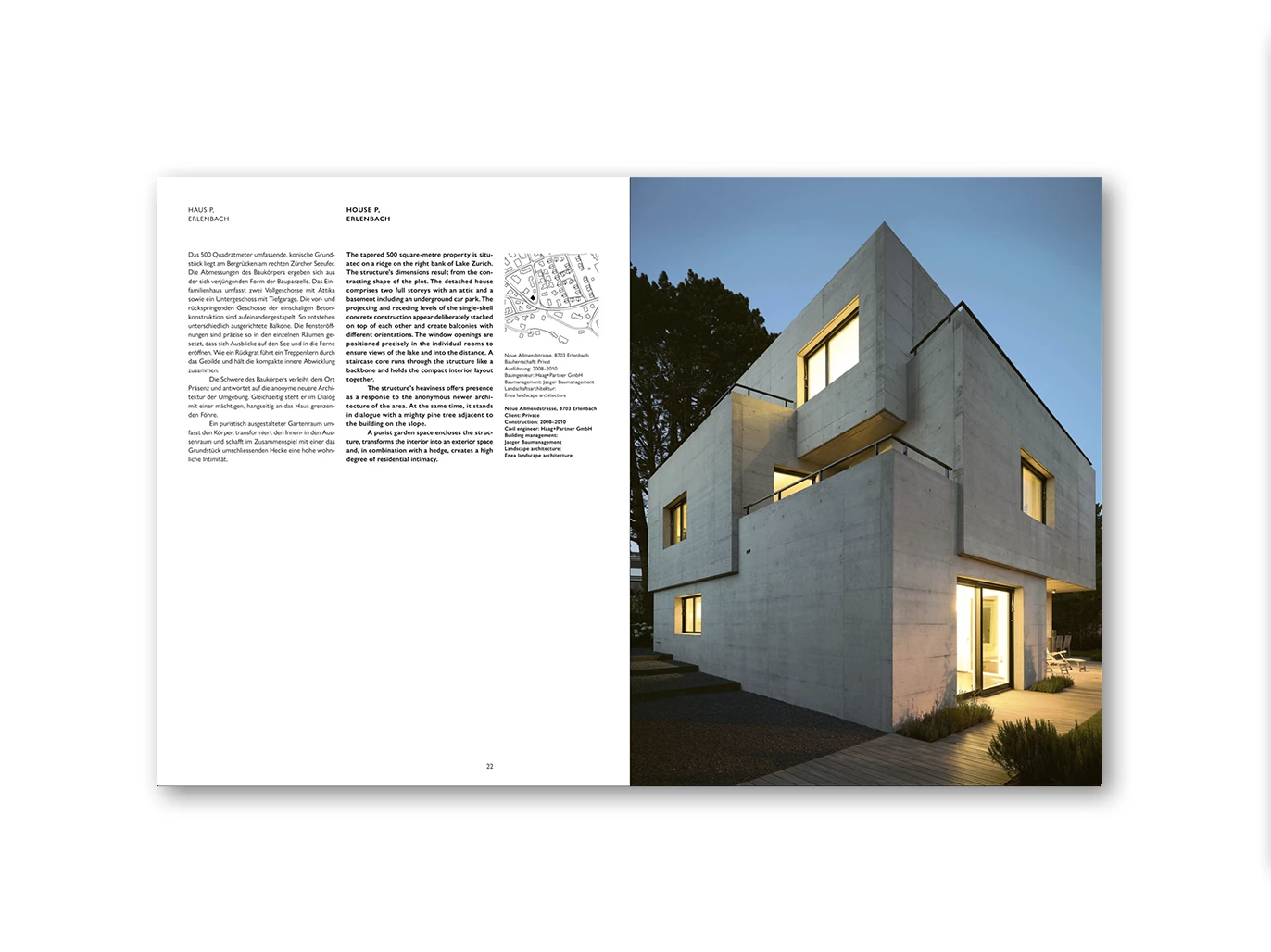 The projects included in this book explore systems and variation, with indi- vidual elements that radiate durability even in temporary structures and when used untreated. Deploying various means: the shipping containers stacked on top of each other in 2006 to house the Zurich Freitag flagship store are bold and colourful, whereas the Maag concert hall, which Spillmann Echsle com- pleted eleven years later less than a hundred metres to the west, is made of subtly modulated Nordic spruce plywood panels through various treatments and perforations. Abroad, the architects helped establish the image of Swiss architecture with the Freitag stores in Vienna and Tokyo, and on an explicitly diplomatic mission, with the “House of Switzerland”. Composed of prefabricated wooden elements and transported on fourteen lorries to Sochi, Milan, and finally to Zurich during the 2014 Winter Olympics, the house is a study in repetition and deviation.