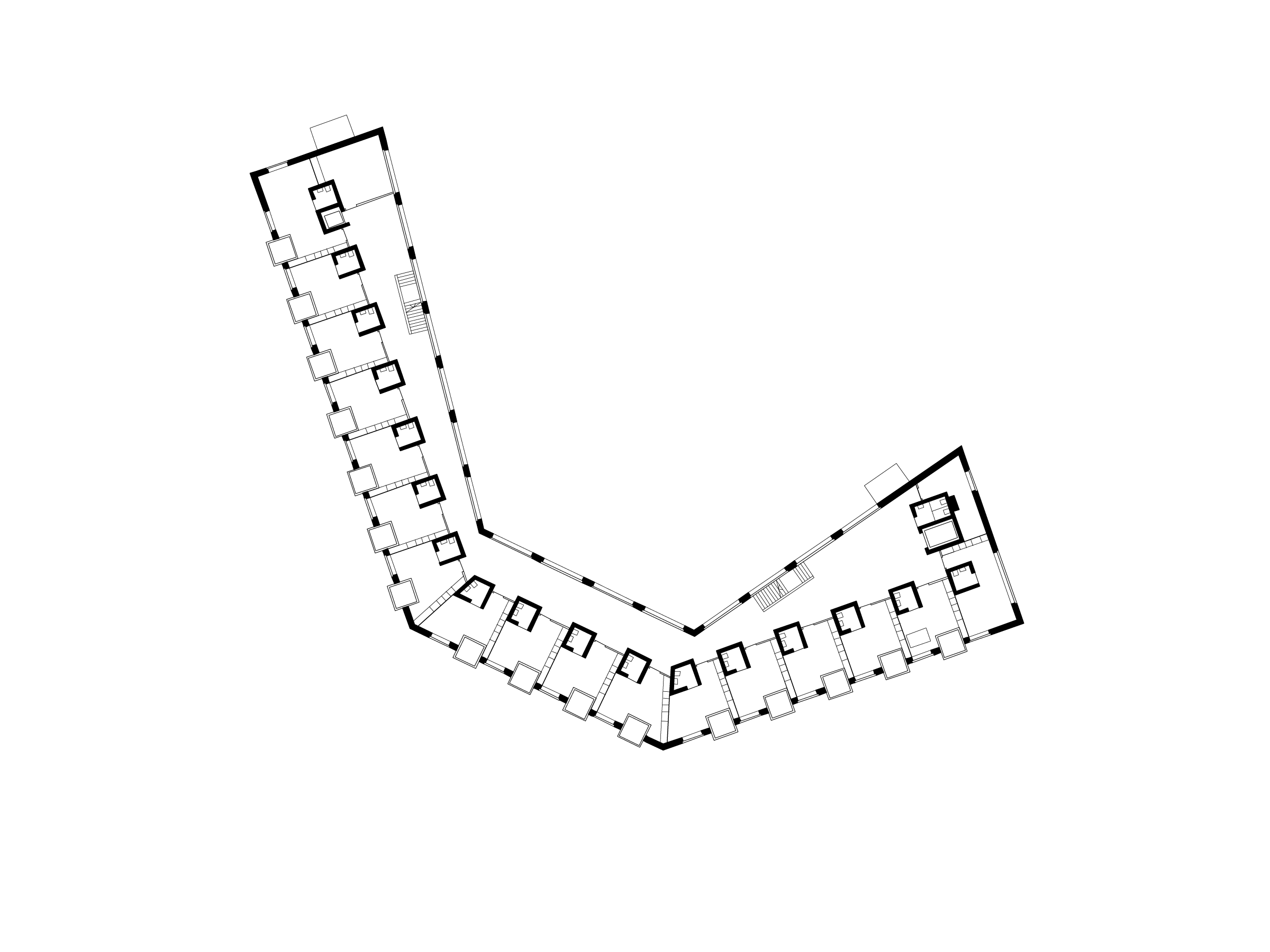 Like vectors, the differently sized rooms, ornated with balconies and bay-windows, push outwards and interlock with the urban space.