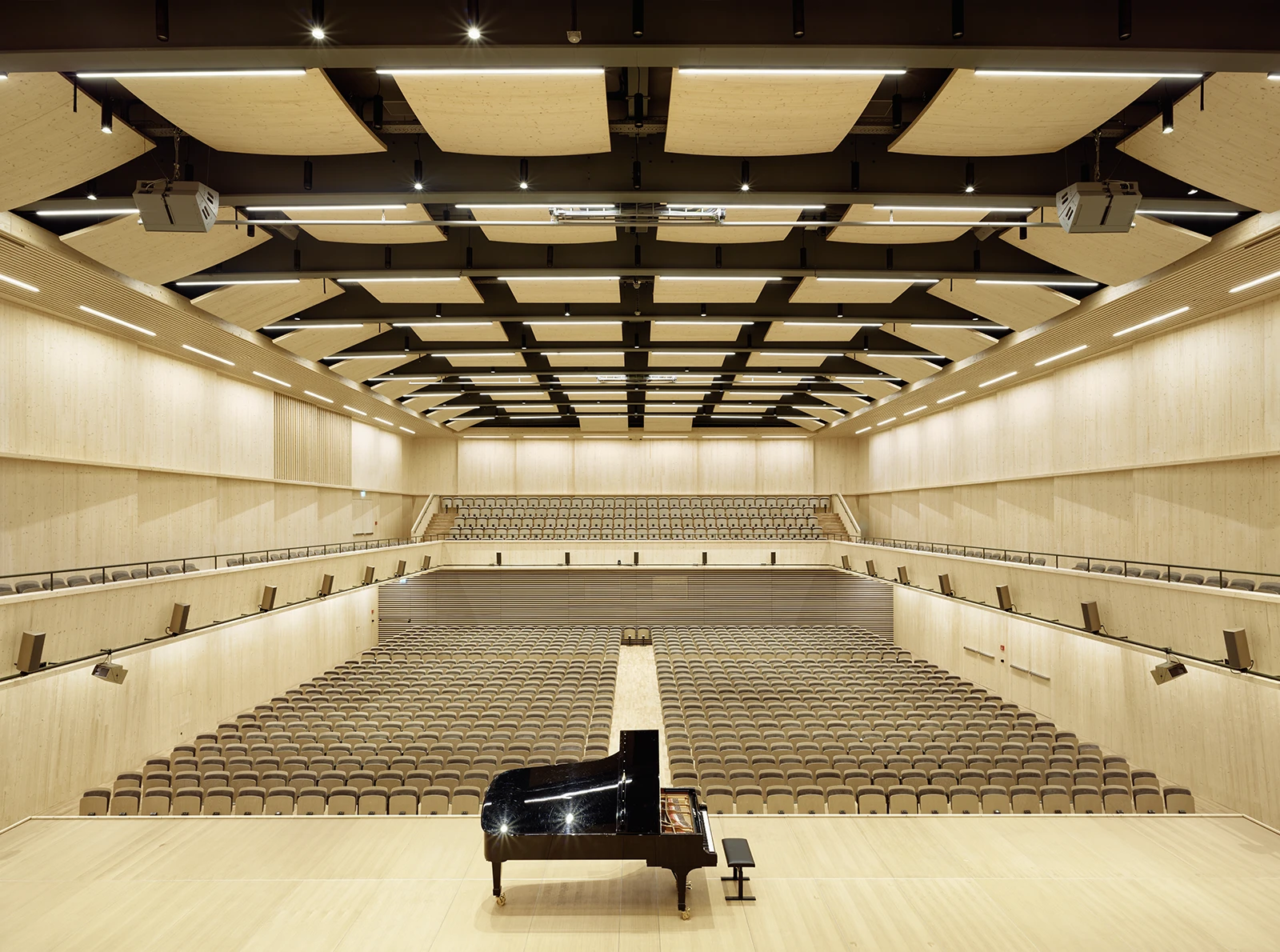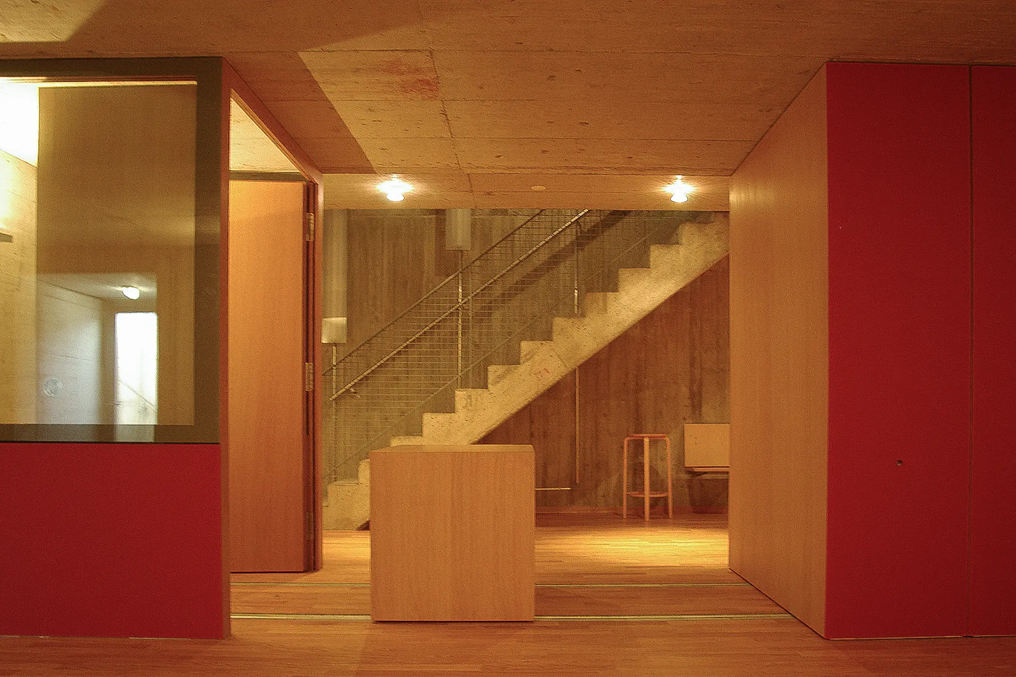 A concert hall constructed from simple and inexpensive spruce wood was inserted as a wooden box in a former production hall. In the intermediate area outside the wooden vessel and within the industrial building’s walls, visitors see the raw and honest character of the elementary wooden construction.
