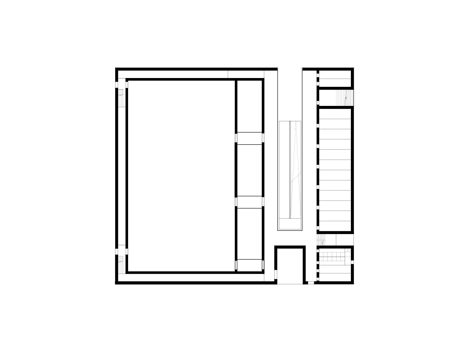 Through this intervention, the main building, the ancillary building, and the new basement are merged into one unit, while at the same time, the independent expression of the individual parts is strengthened.