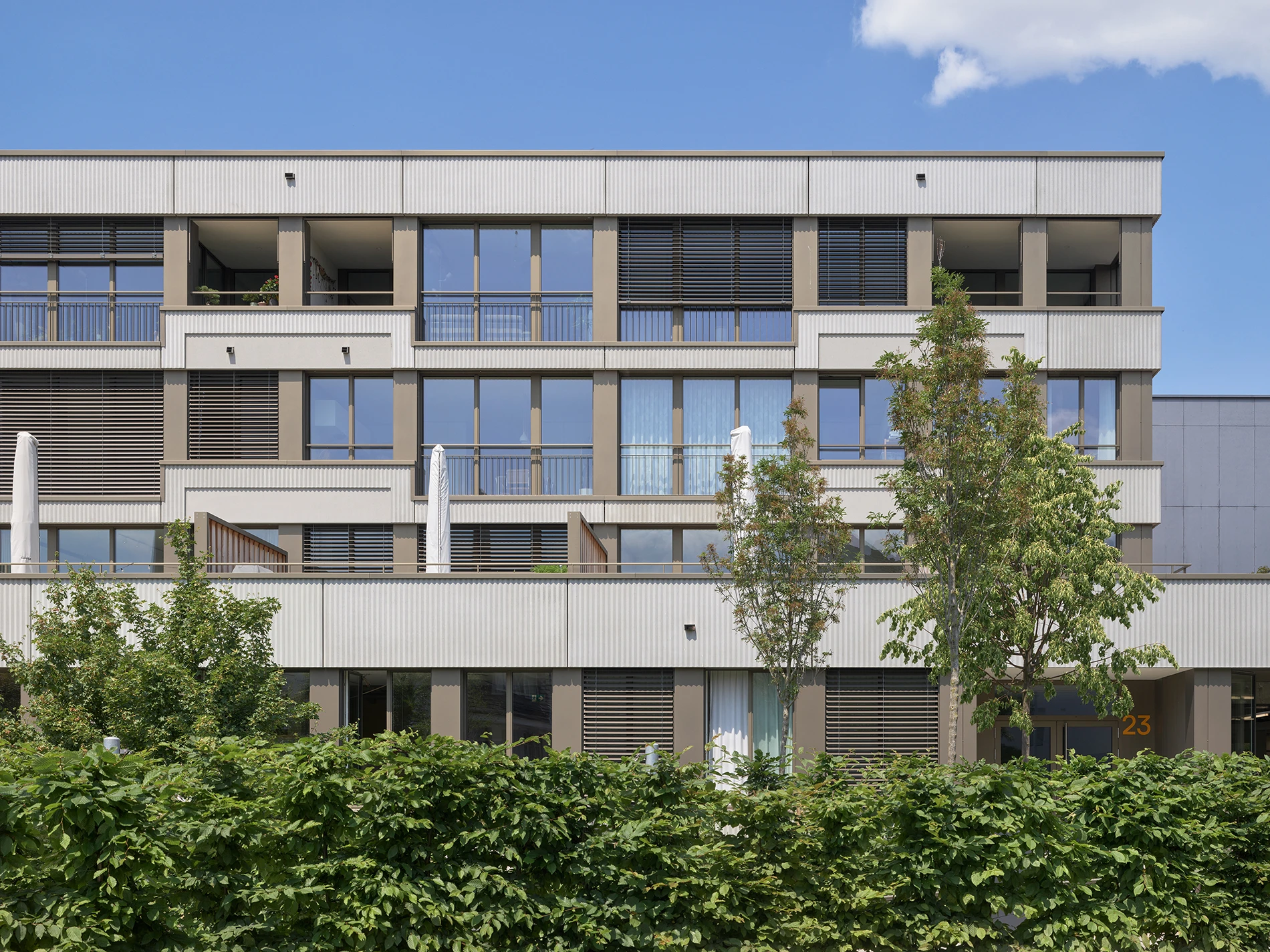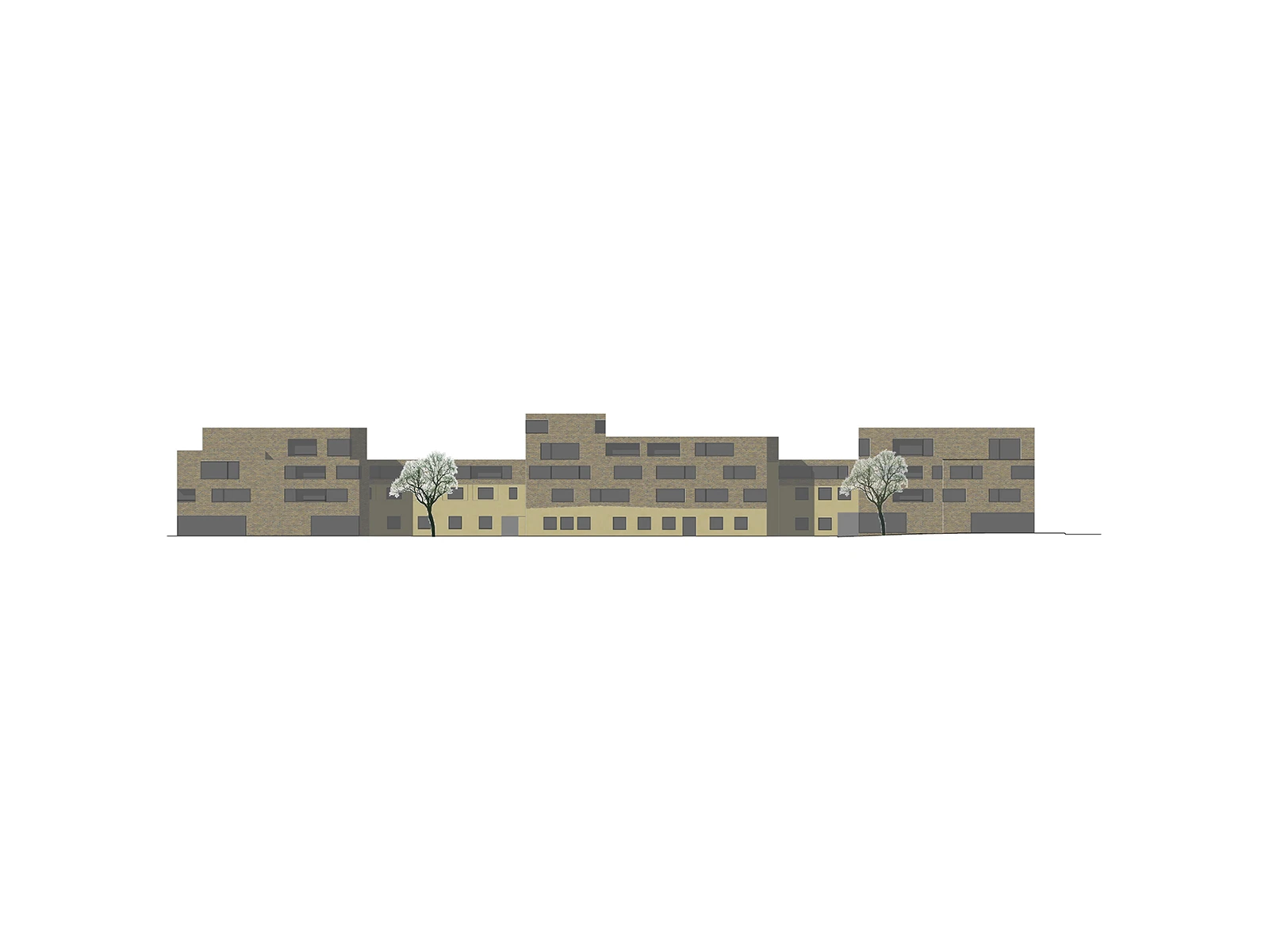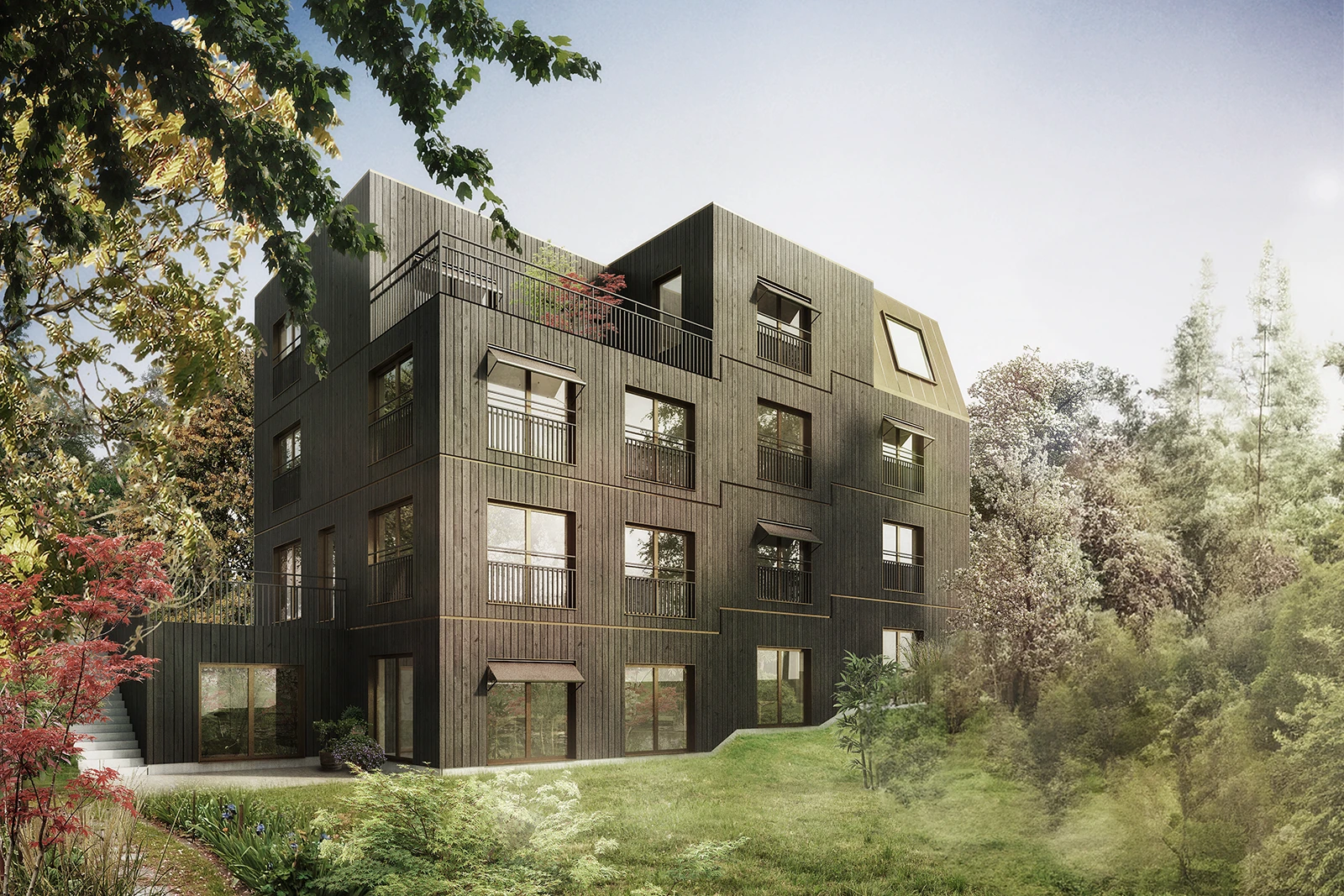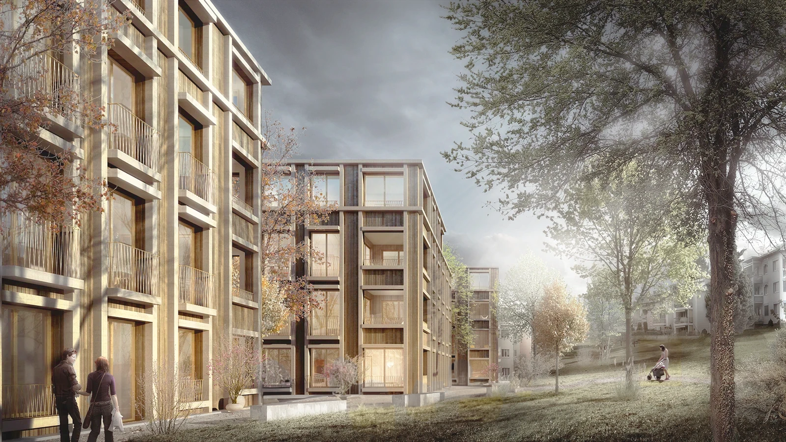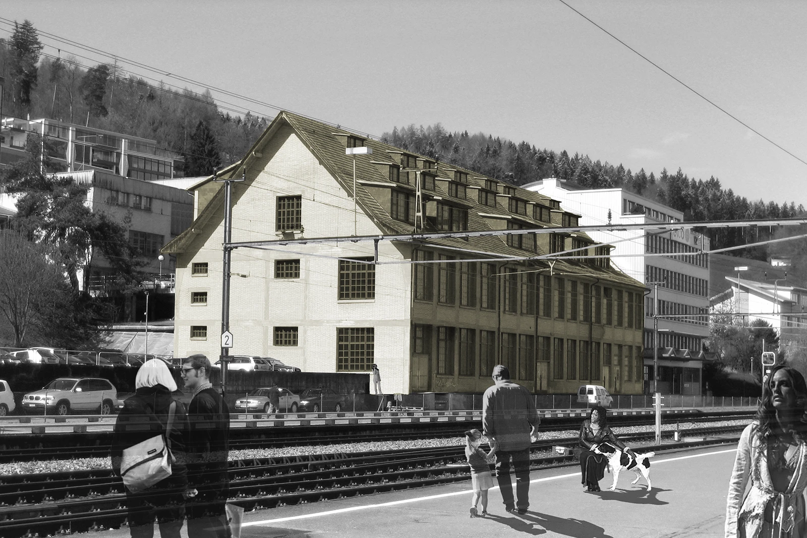 In line with the Wettingen Gestaltungsplan, the project presents an updated urban identity with rhythmically structured roofscapes that improve urban connections to the adjacent railway area.