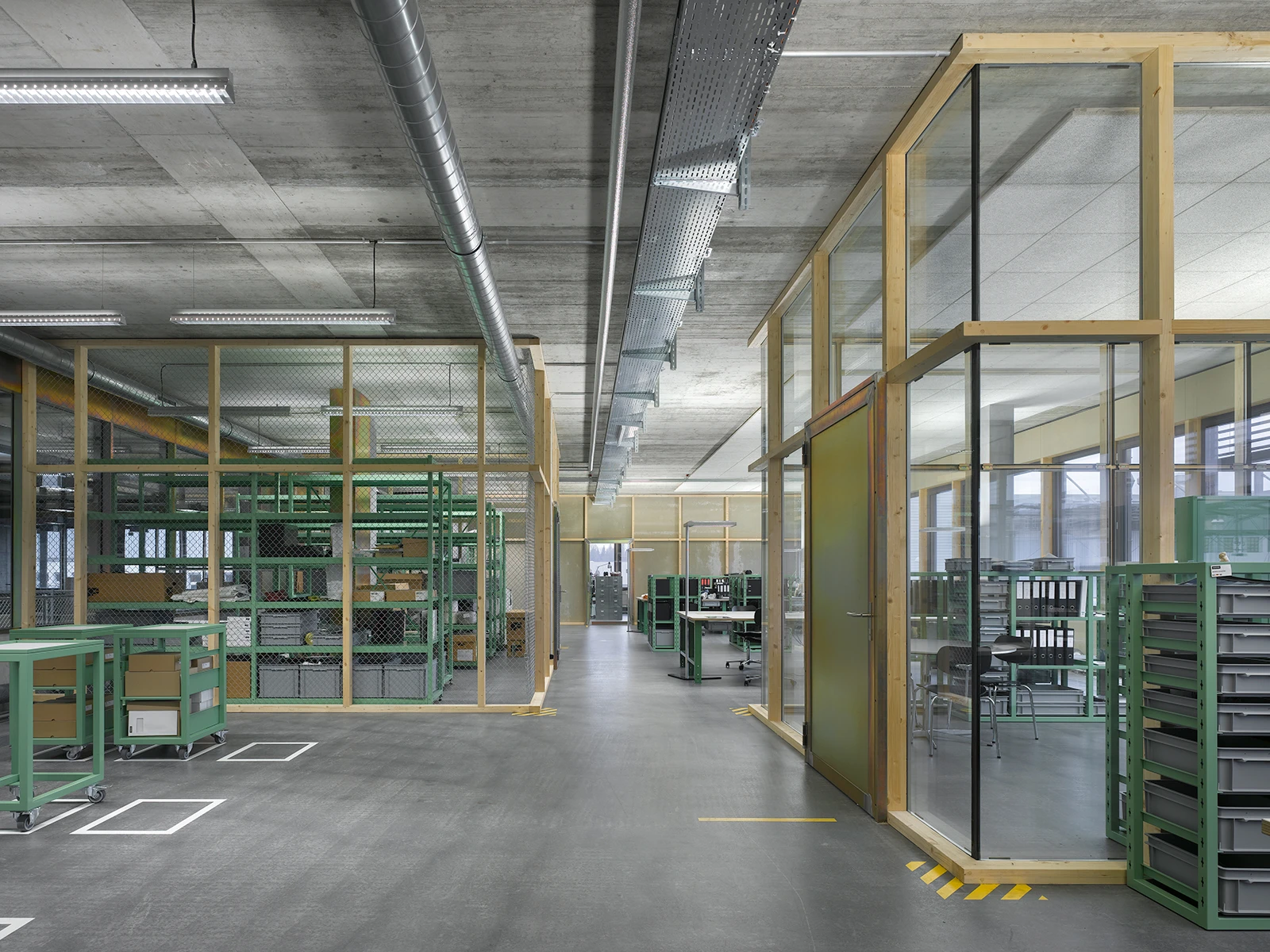 spillmann echsle’s refurbishment of a former production facility prioritizes horizontal and vertical flexibility to accommodate various use cases, where the ease of installation and de-installation of the floor and partitioning elements is paramount.