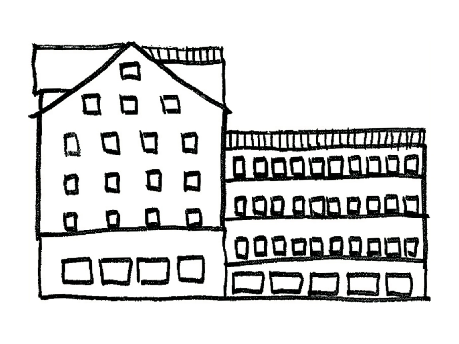The specific morphological shape of the proposed buildings is primarily defined by a single "house" component, replicated at scale.