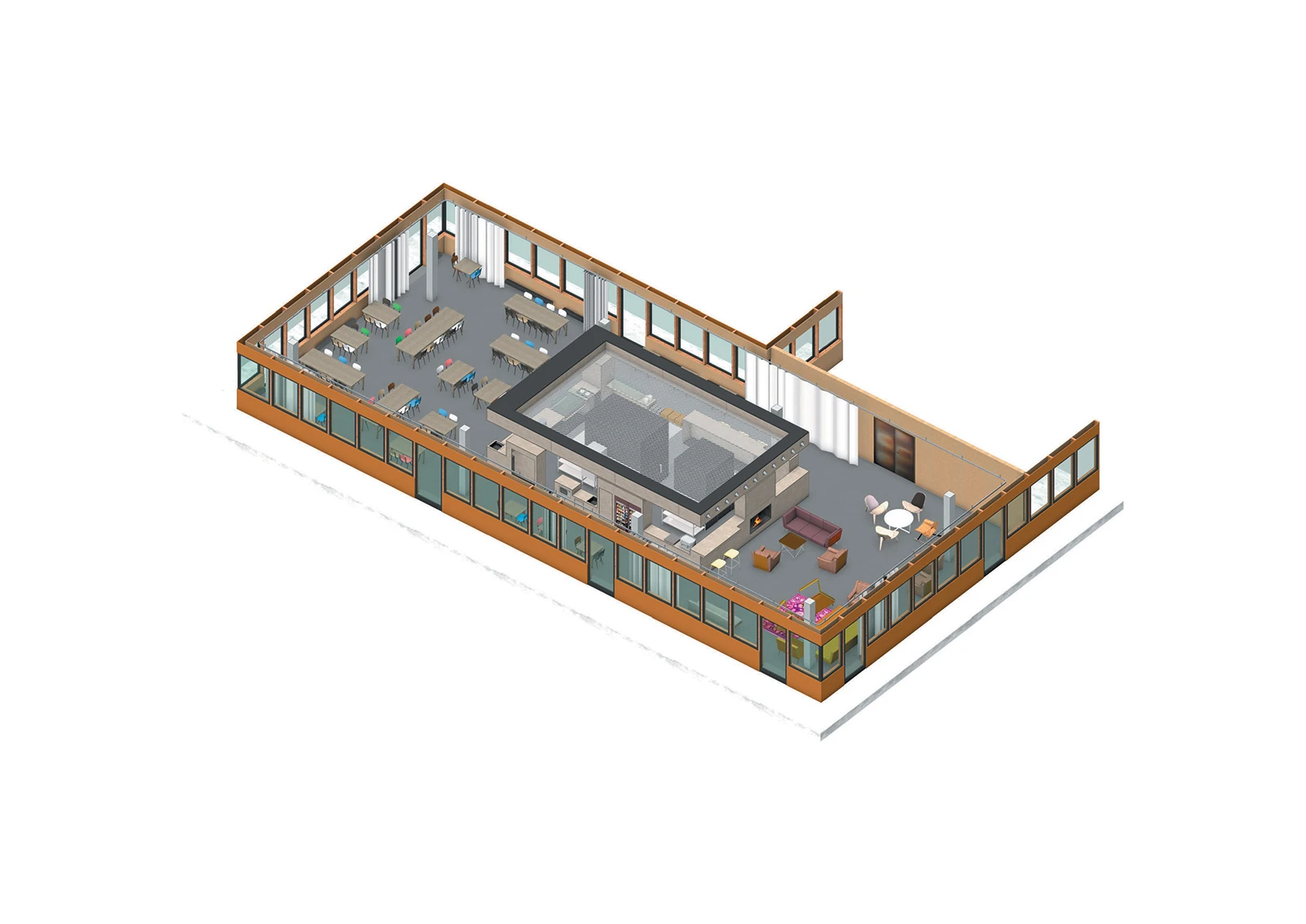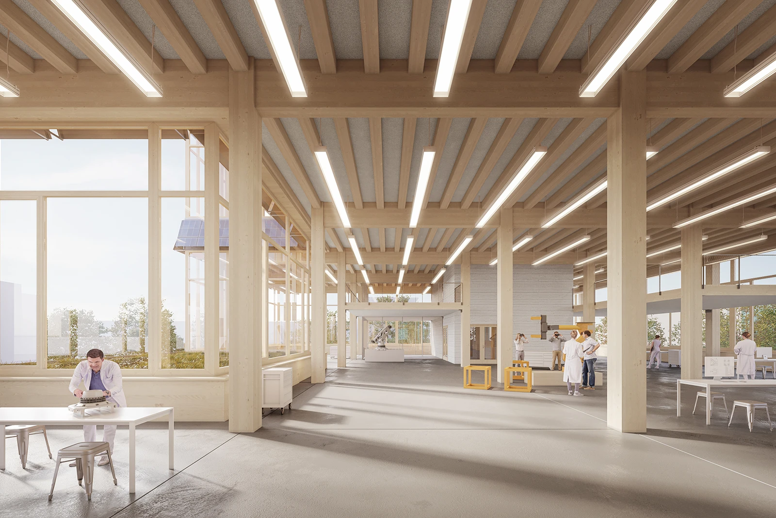 The objective of this competition was to transform an existing industrial hall, turning it into an inspiring training hub for knowledge sharing for an international company.