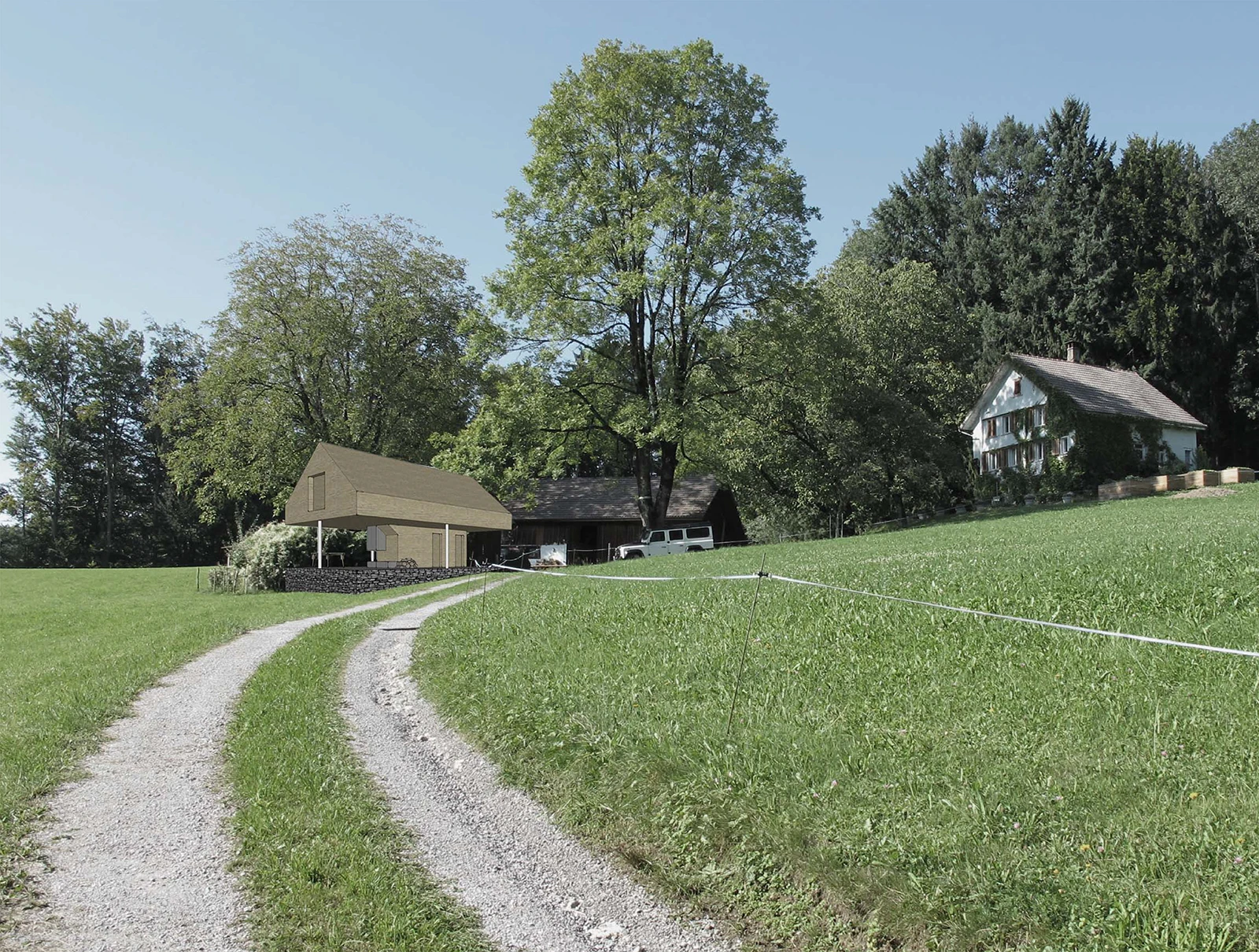 In an idyllic and rural setting, a residential study explores thoughtful architectural syntheses.