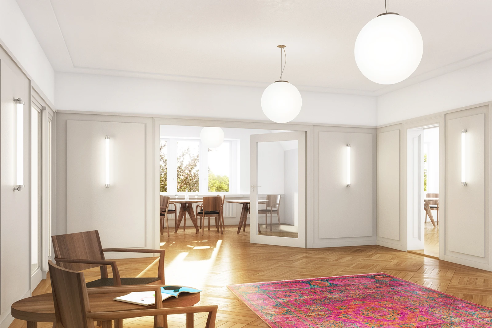 The retained architectural essence marries the building's historical splendor with the nuances of modern residence, underscoring Spillmann Echsle's signature approach to updating historical spaces.