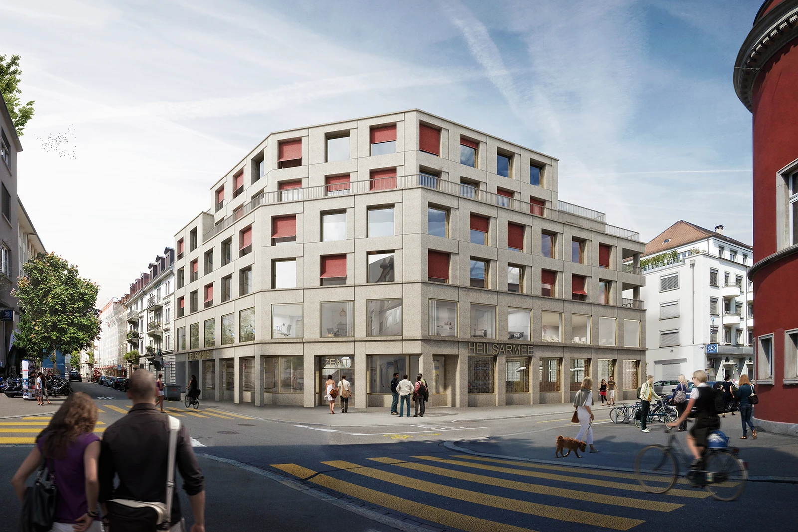 On the Aussersihl area of Zurich, a proposal for the Salvation Army merges with the built context.