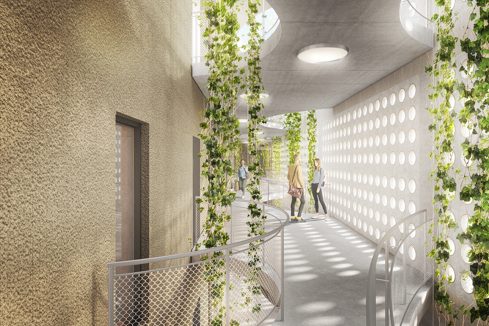 The primary principle of this competition submission is the accentuation of the typological character of the existing: the urban, street-facing facade of Draht and Neudraht, a building within a park, all while preserving their core structural integrity.
