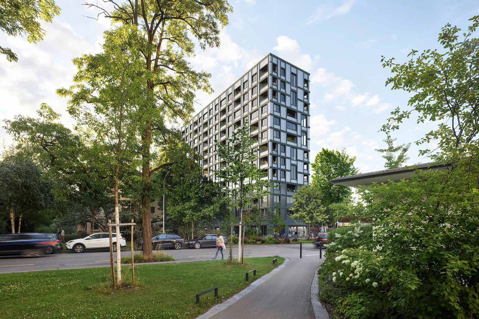 Given the stipulated high-rise typology and its strategic placement at the juncture of the Altstetten, Albisrieden, and Aussersihl districts, this tower design is highly visible from afar and, with its design, introduces a building form that is consistent with its urban surroundings.