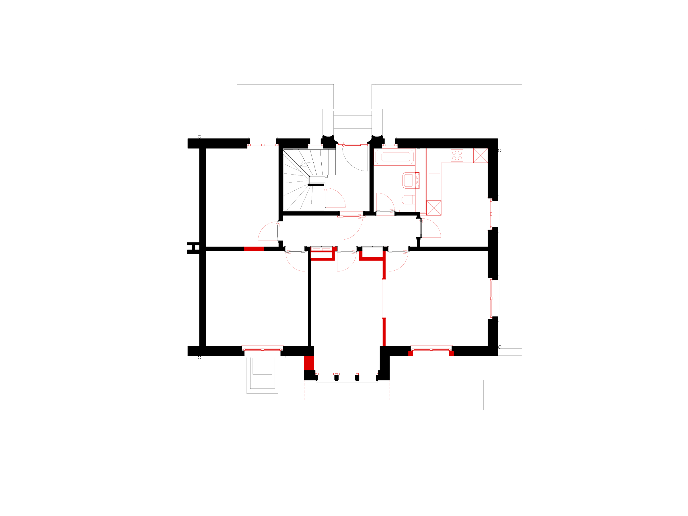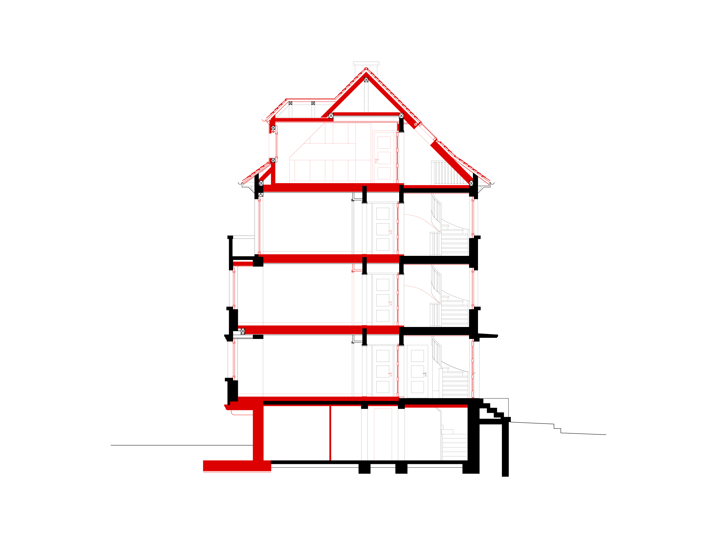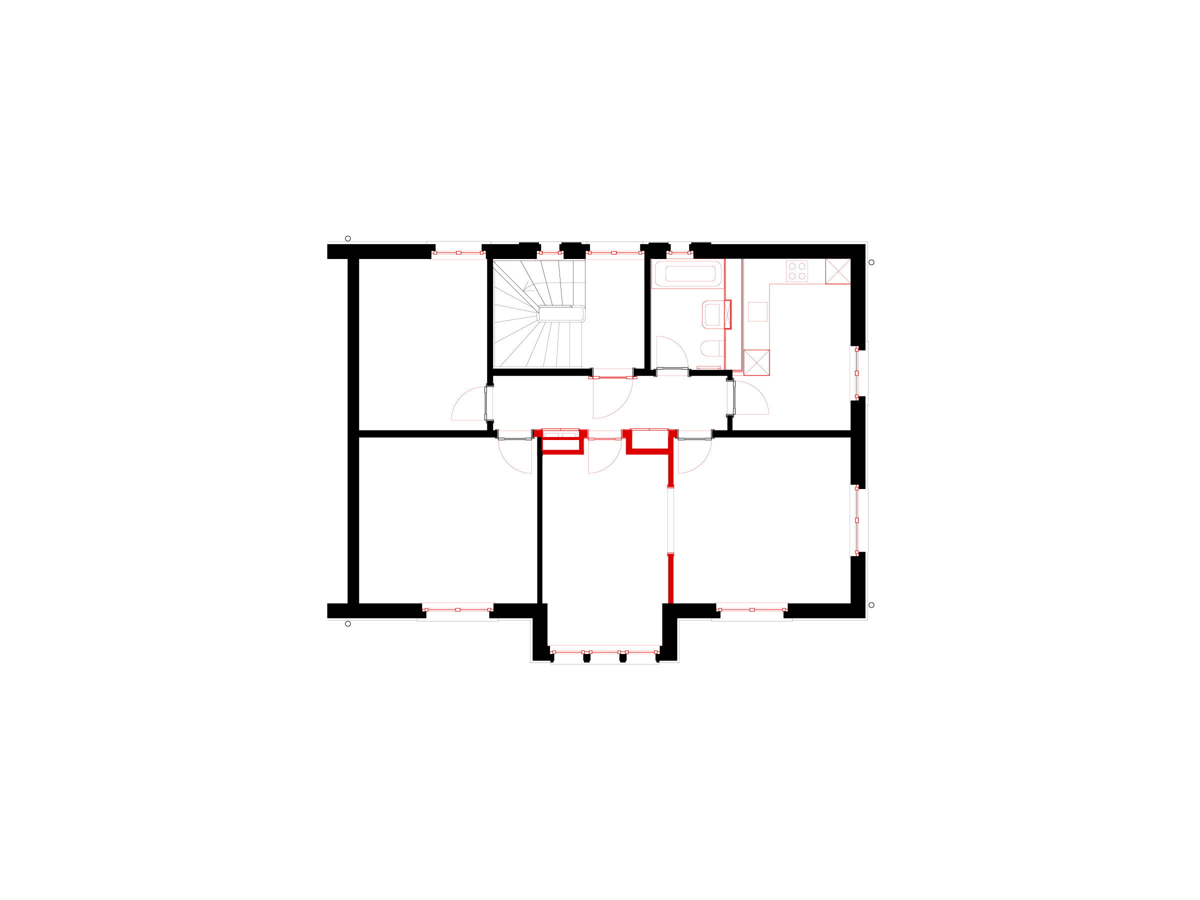 A residential building on Birchstrasse, built in 1921, is part of a larger neighborhood development on the edge of Oerlikon. Four residential units have been renovated to meet today’s living standards. New sound absorption was built in to improve the acoustics in the apartments, while the careful renovation of the bathrooms and kitchens involved choosing colors and materials that reference the style of the building’s era.