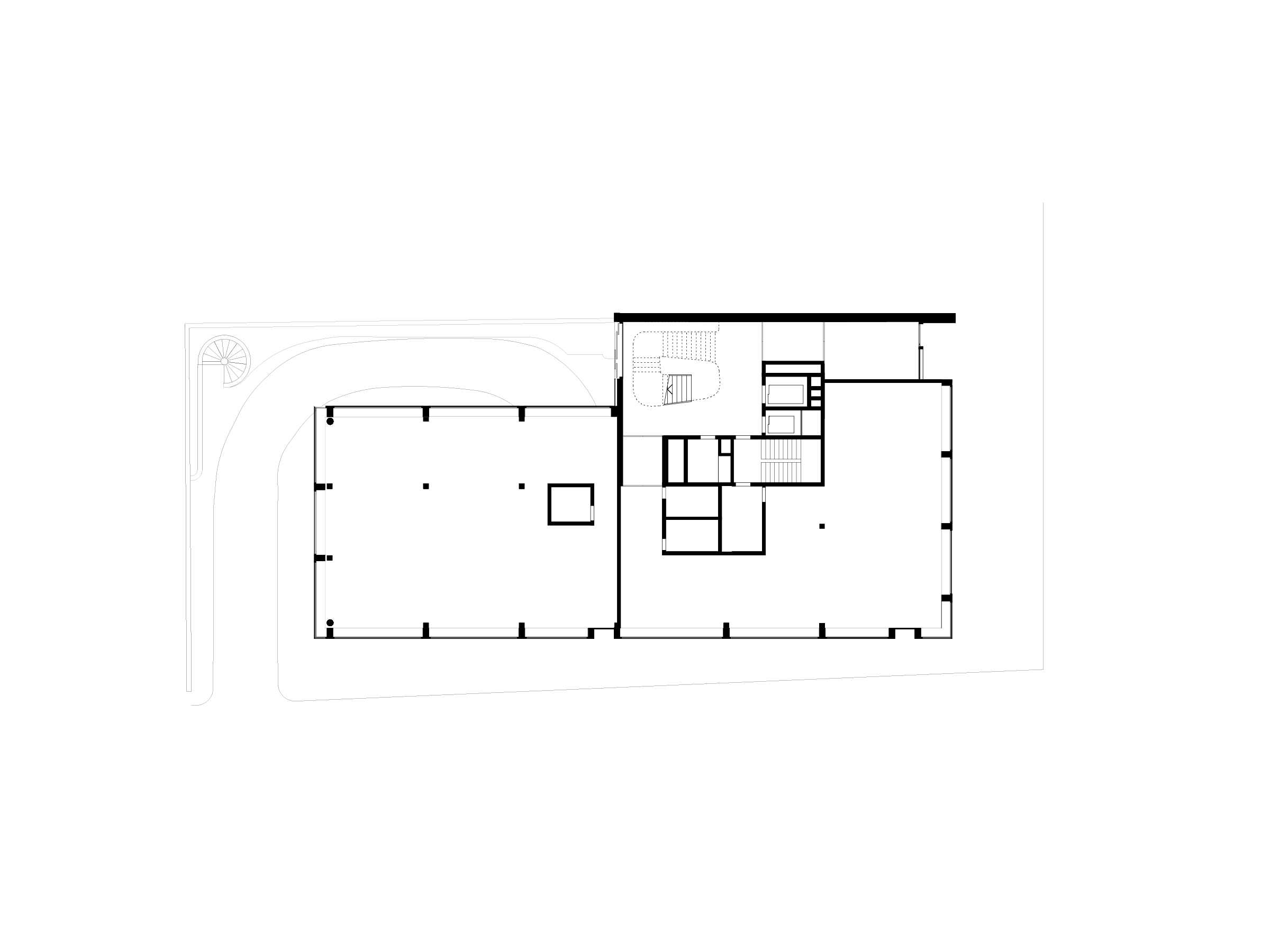 A newly organized core acts as a spatial connection between a generous staircase and the clearly defined office space.