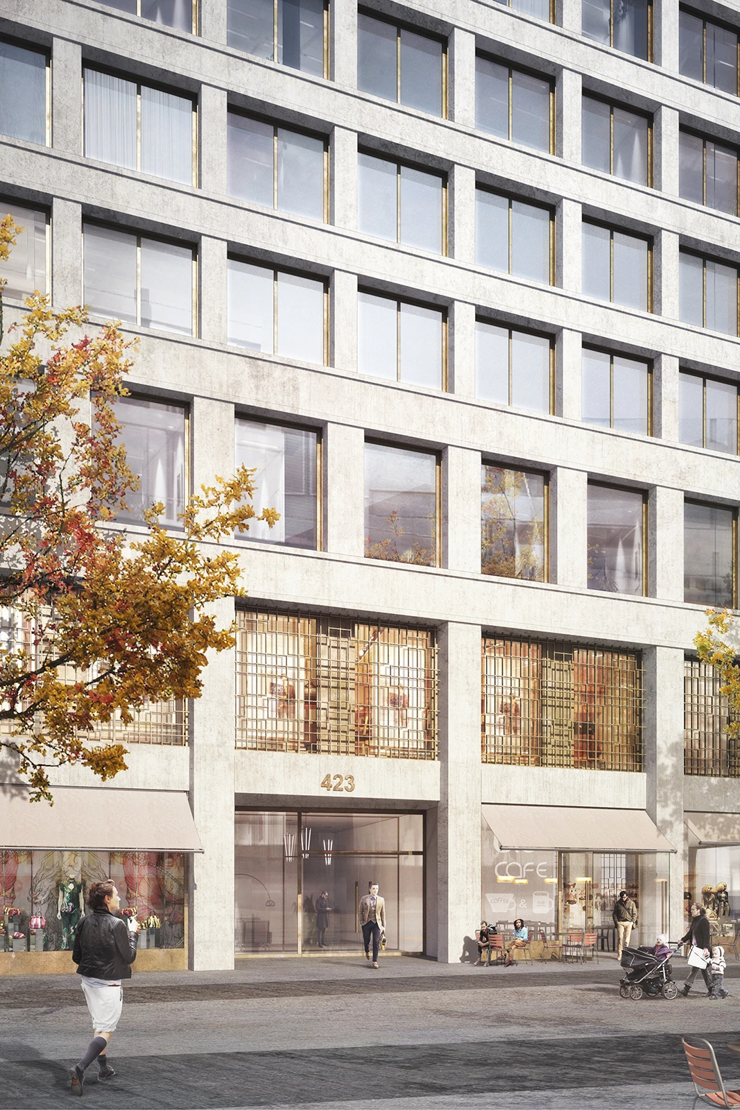 On the Europaallee side, the building’s subtle grid overlay subtly evokes a casual Italian ambience -„Italianità“ – where passerby by can enjoy a coffee and watch the world go by. Simultaneously, the concrete cladding elements harmonize with its urban surroundings with a pleasant visual presence.