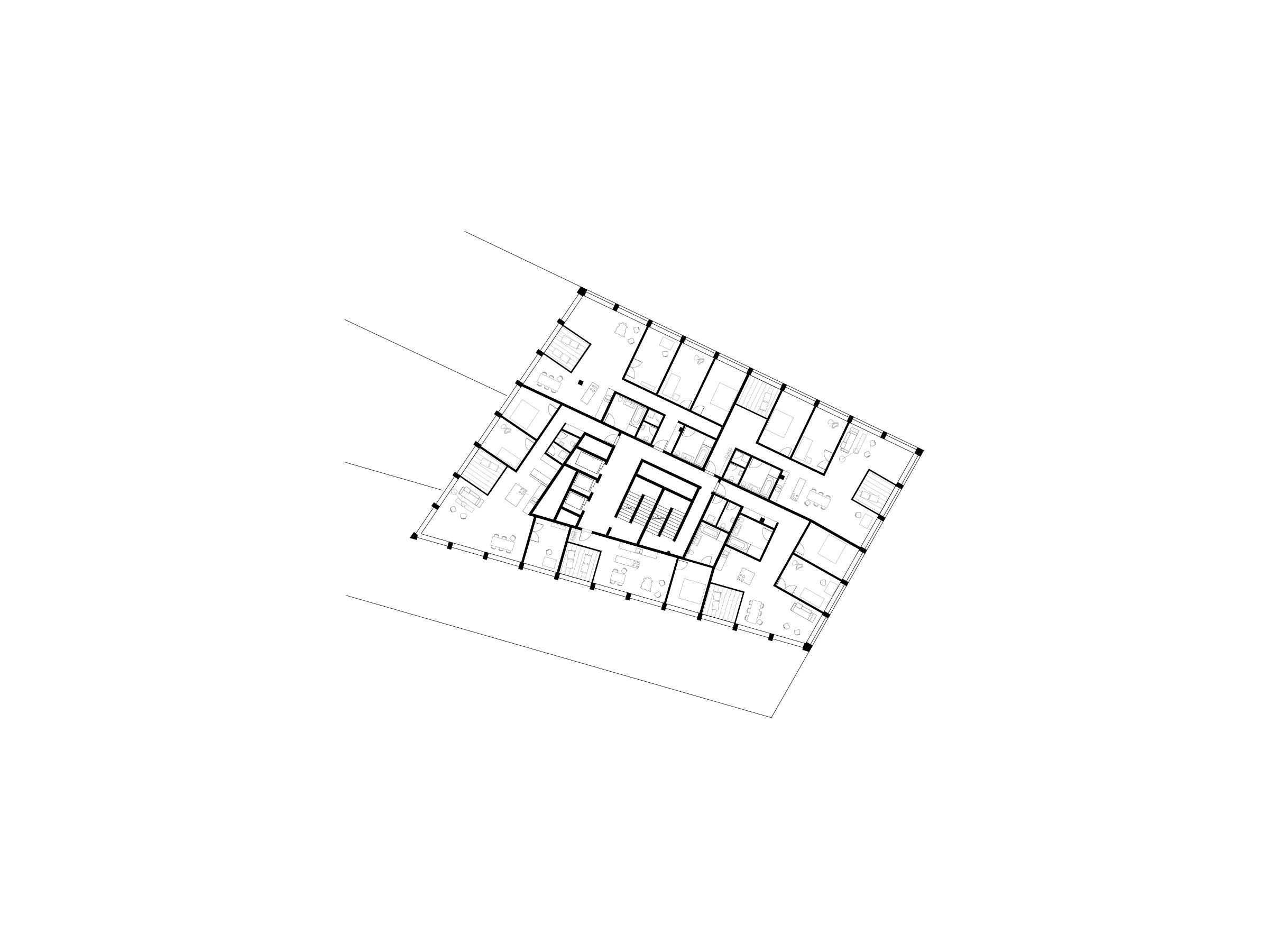 As the final building in the Europaallee development, the building has an essential role: to concisely and precisely formulate an architectural connection to the rest of the development, incorporating the strength of the urban space that is then transferred into an inherent whole. The position of the building reacts to the surrounding environment with clearly defined volumetric recesses.