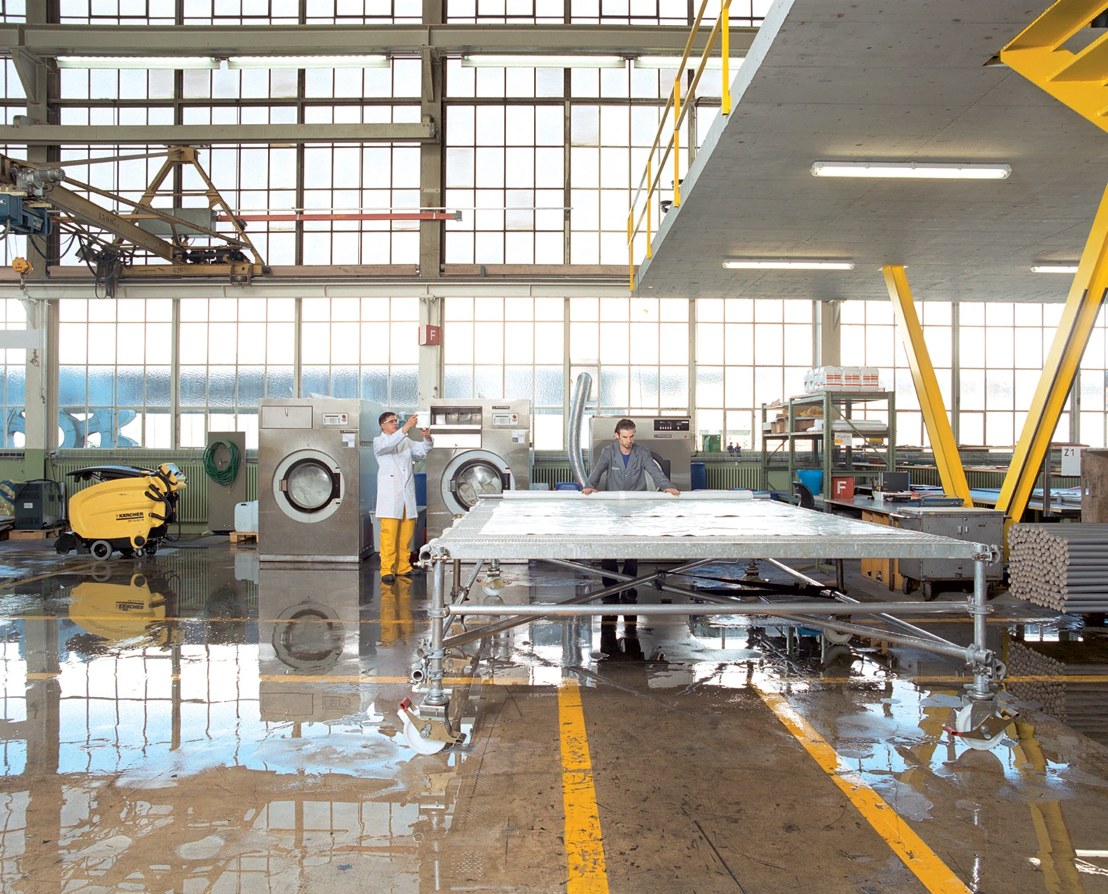Die Produktion von Freitag Taschen ist sehr platzintensiv. Rund 2'780 Quadratmeter Bodenfläche werden benötigt, um die gebrauchten LKW-Planen anzuliefern, auseinander zu legen, zurechtzuschneiden, zu waschen, zu rollen, zuzuschneiden, zu sortieren, zu montieren, zu Taschen und anderem zusammenzunähen, zu fotografieren, zu lagern, zu verpacken, wieder zu lagern und schliesslich zu verschicken.