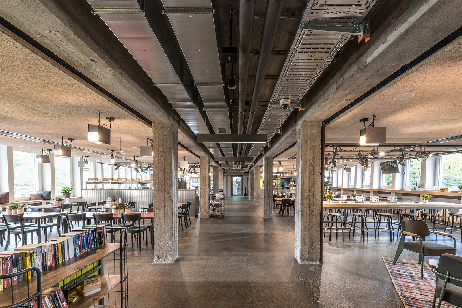 In order to create a playful and uncomplicated environment, the refit includes an Orangerie with hammocks, a break room with high-quality vintage furniture, and a restaurant segmented with islands. Collectively, these design measures provide diverse facilities that help establish a professional and creative working environment, facilitating employee interaction and concentration.