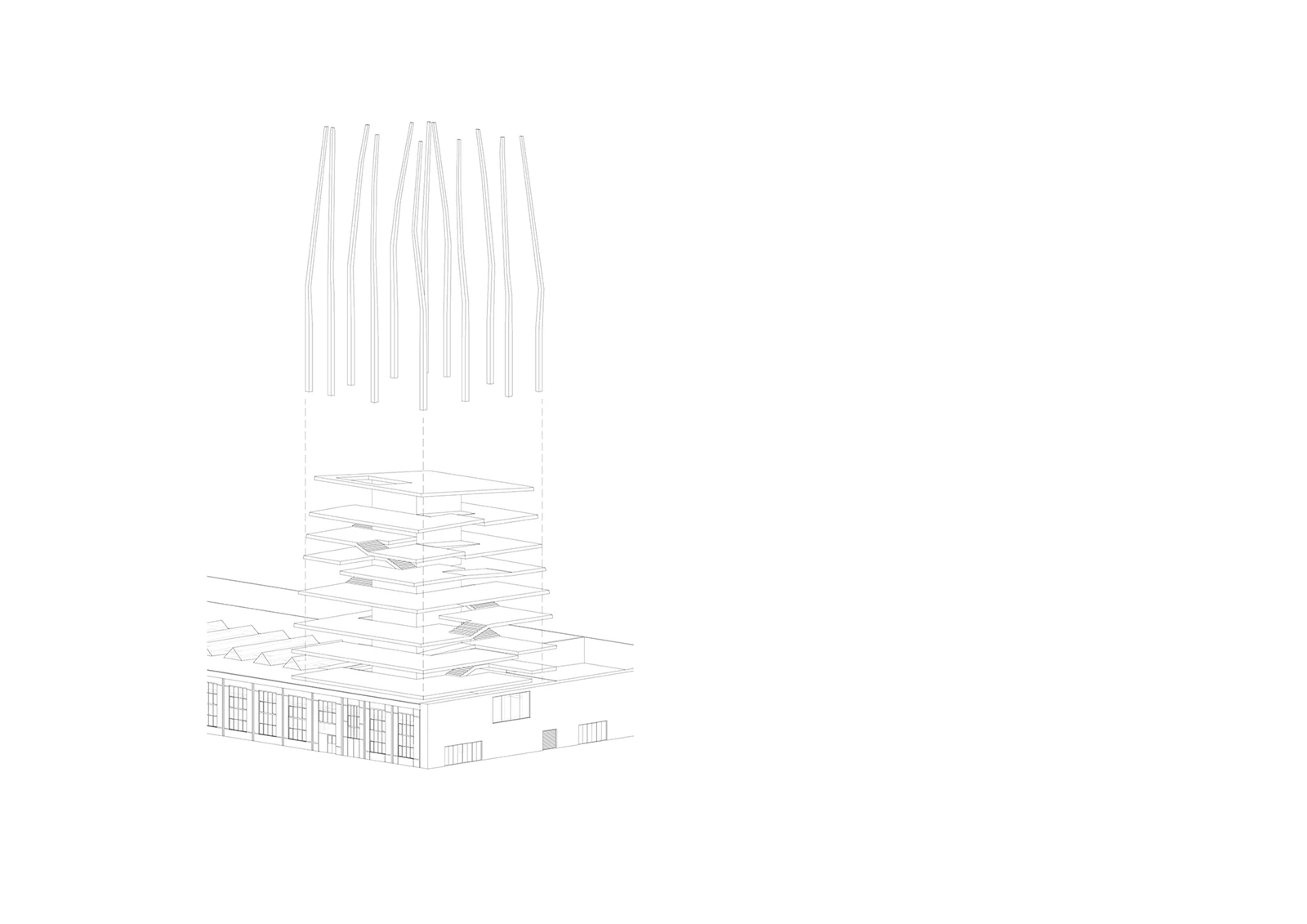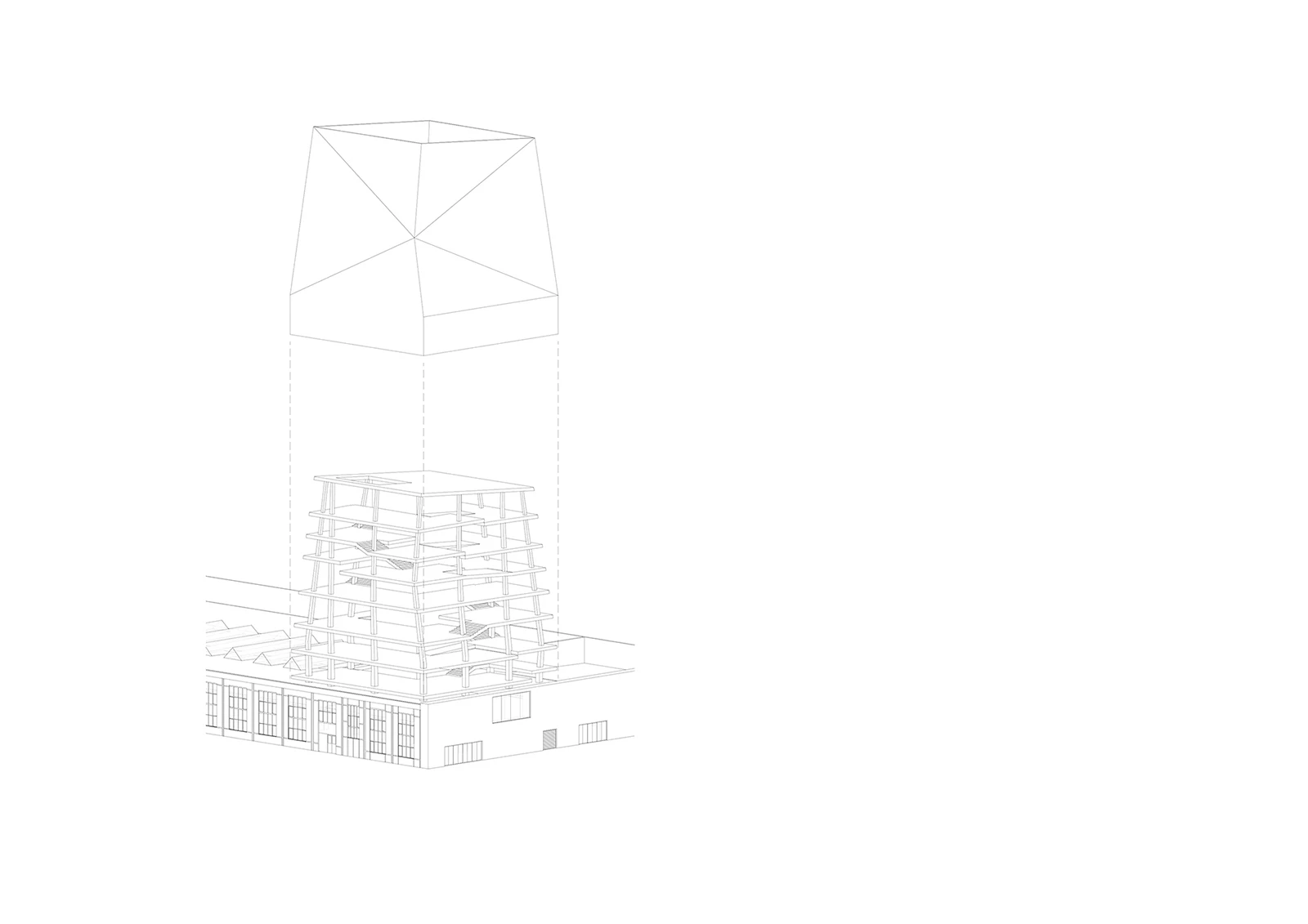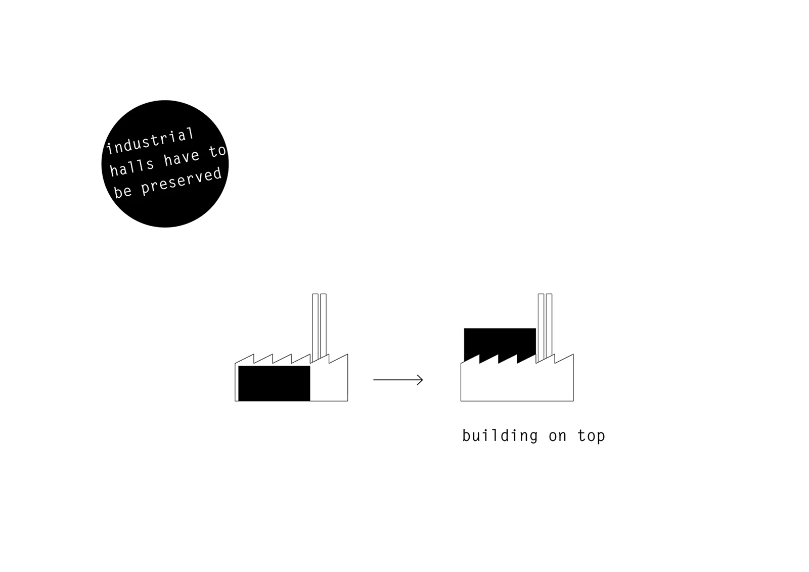 The preservation of the uniqueness of the industrial complex can be ensured thanks to introducing an additive extension that uses the existing building as a base.