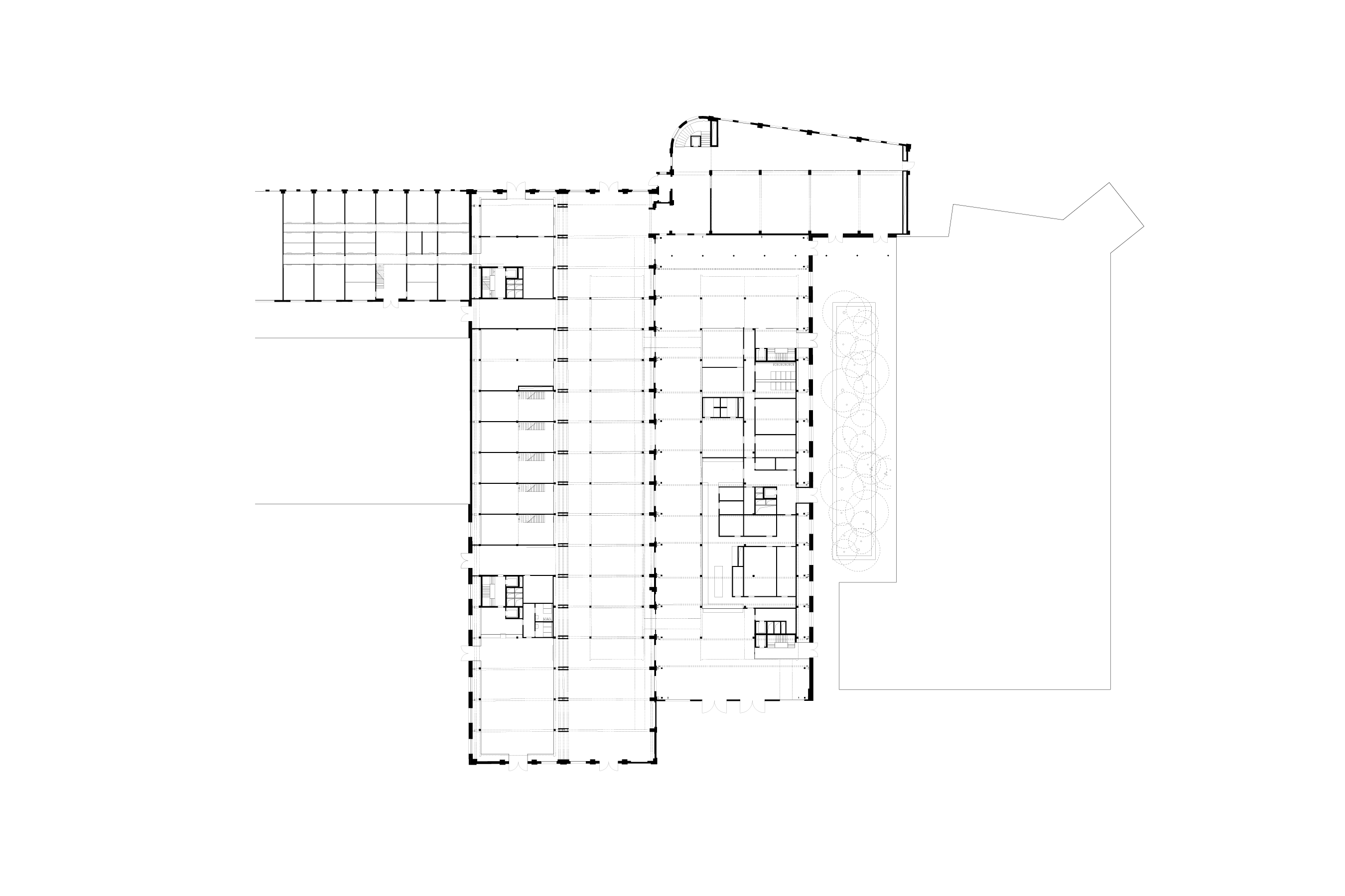 The Rapide Hall houses the hotel, the head building features an event space, and the Draisine Hall is conceived as a two-floor co-working space. All of these uses and areas can be accessed via the centrally located main entrance.