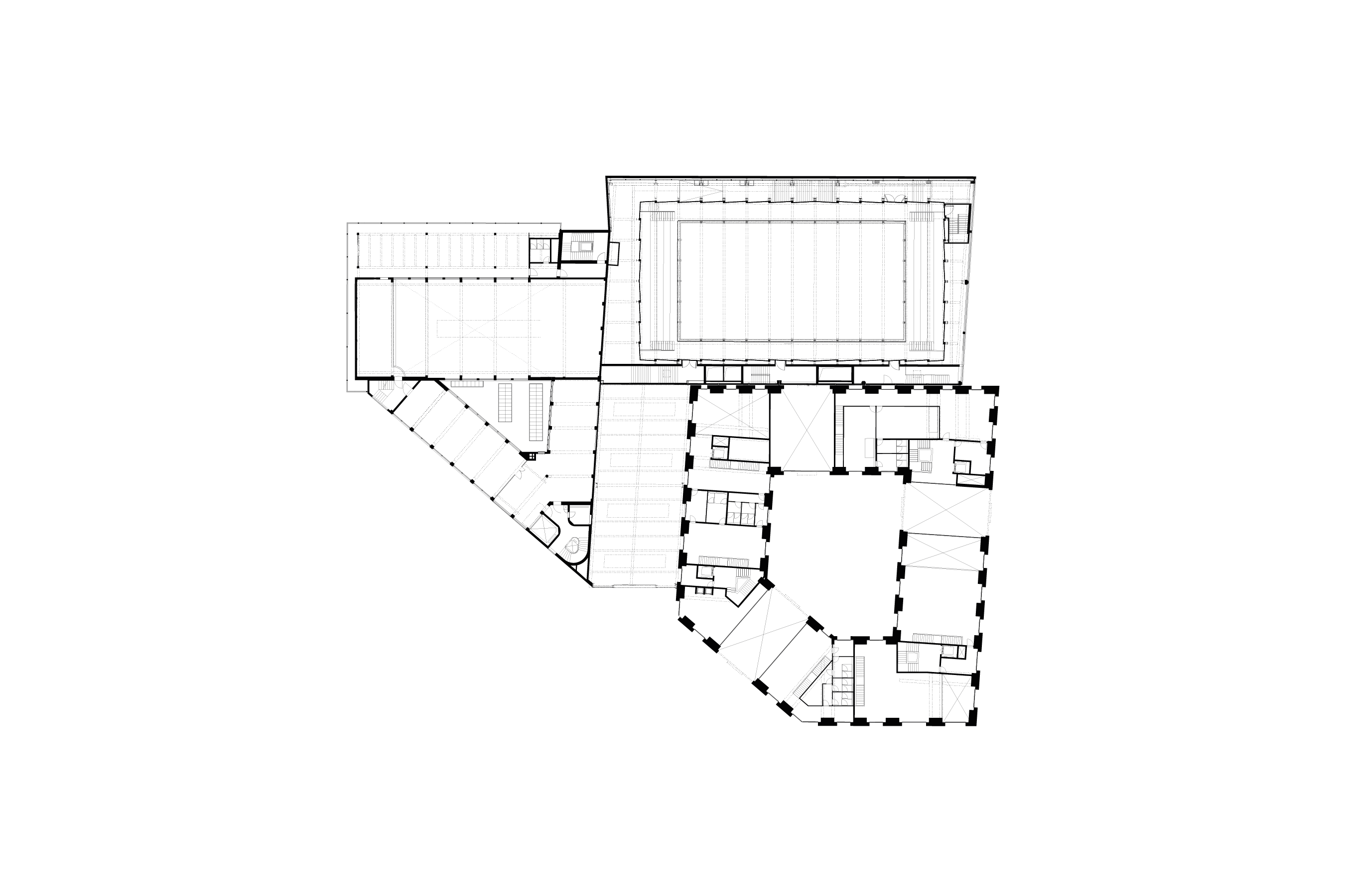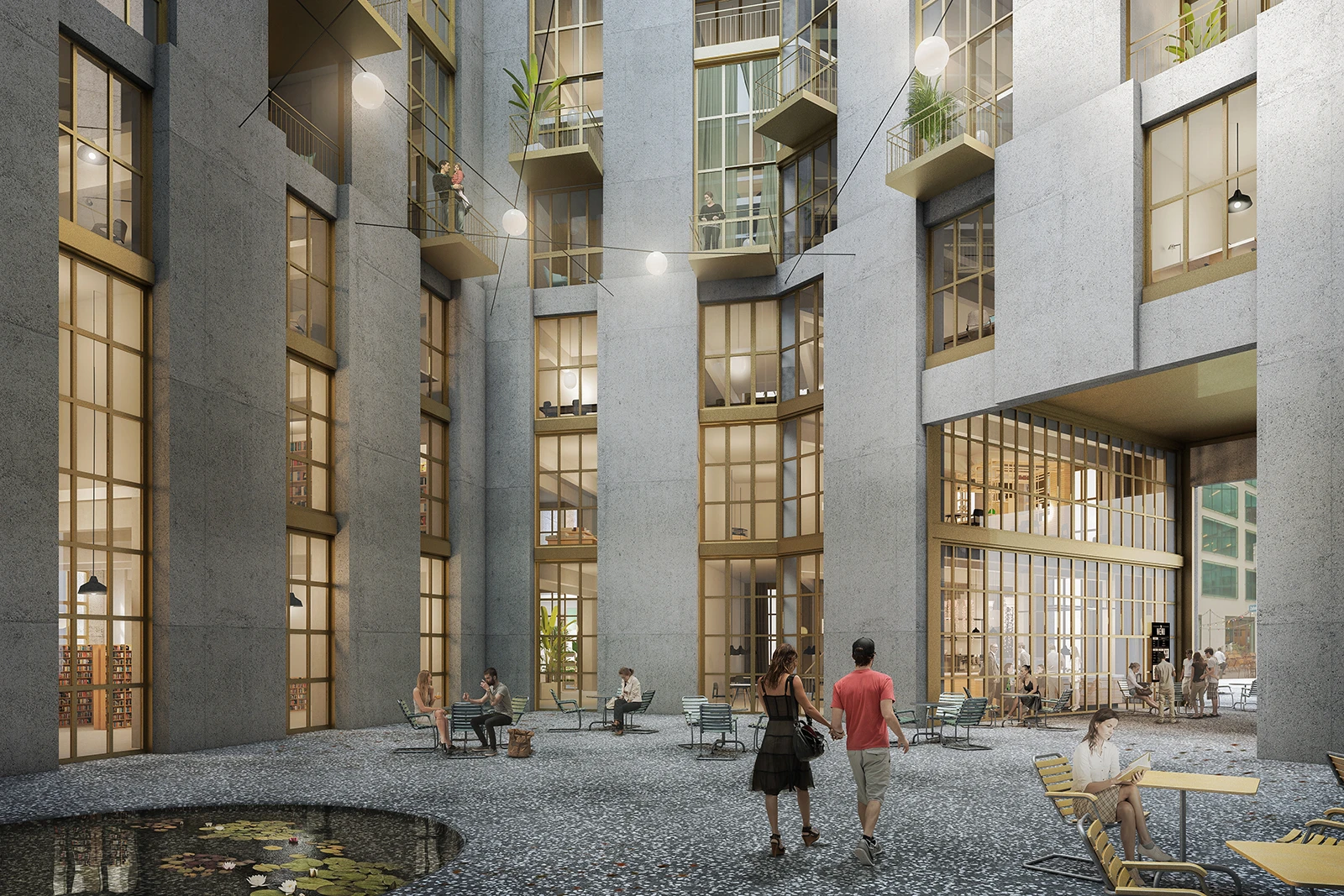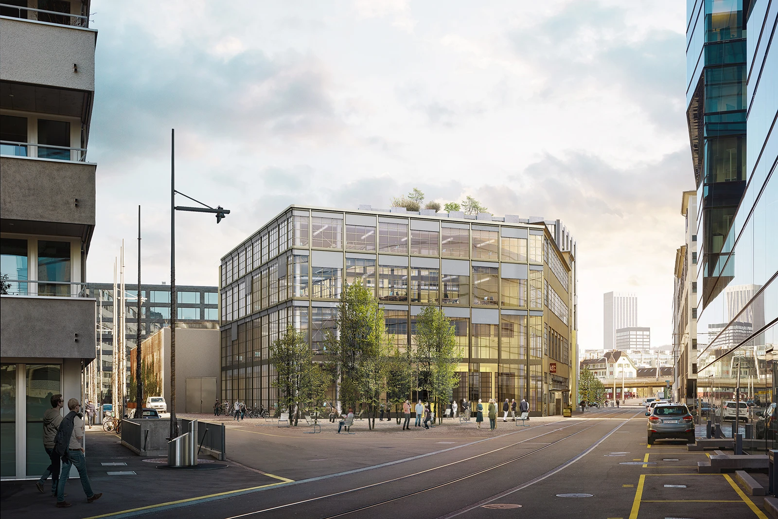 Next to Building K, a new building will replace the former Maag production facility, clearly referencing the neighboring listed building in typology and form. It will feature an enclosed courtyard framed by one-story high entry portals inviting urban life inside. In terms of its public-facing program, the project is dedicated to a wide range of public functions, including cultural spaces, retail, co-working areas, and a small indoor market.