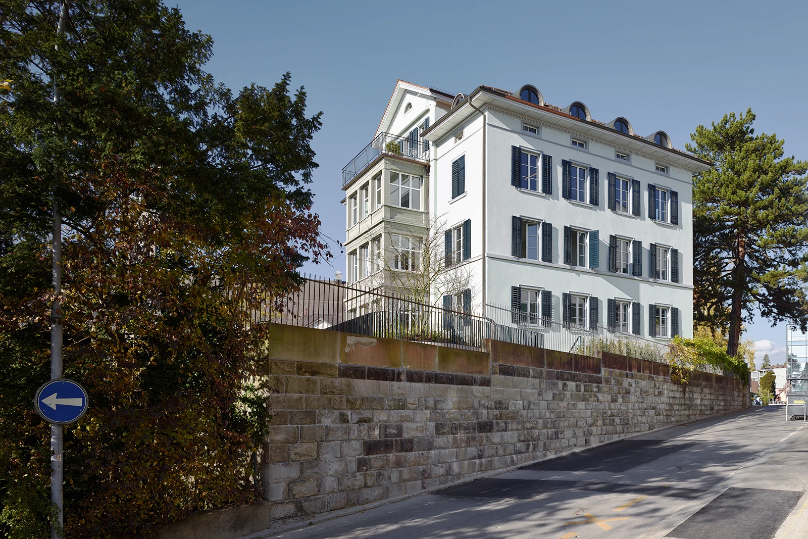 Durch den Eingriff konnten das Haupthaus, das Nebengebäude sowie das neue Sockelgeschoss zu einer Einheit zusammengeführt werden, während gleichzeitig der eigenständige Ausdruck der einzelnen Teile gestärkt wurde.