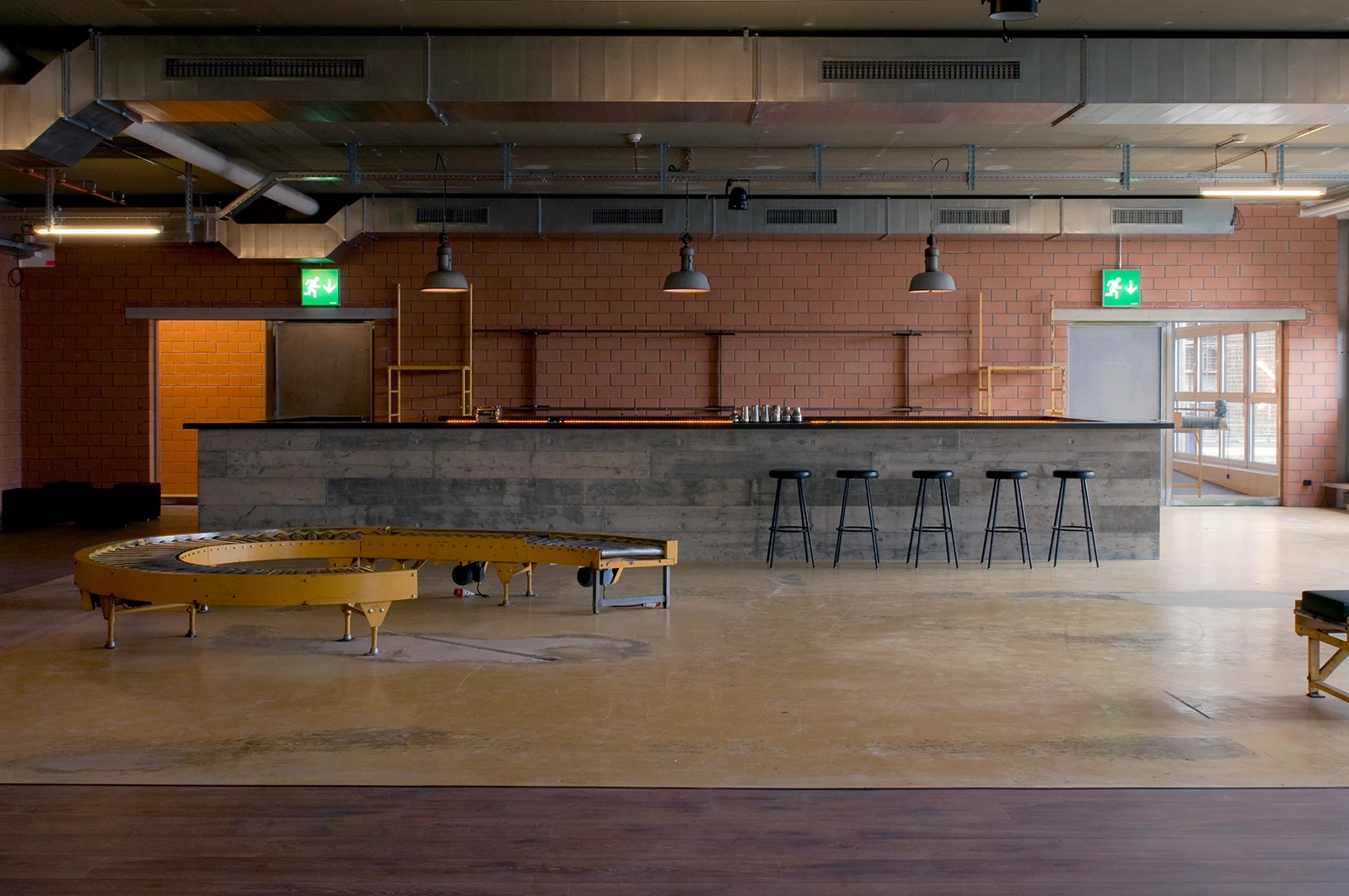 A temporary interior fit-out for a salsa dance school is marked by a nuanced interplay of existing elements and tailored interventions. Industrial components found in the spaces are repurposed as furniture, a new bar is introduced, and acoustic enhancements ensure an optimal auditory experience, while strategically placed lighting installations illuminate the space. This temporary intervention, infused with meticulous quality, fosters an atmosphere where the vibrant energies of dance can flourish.
