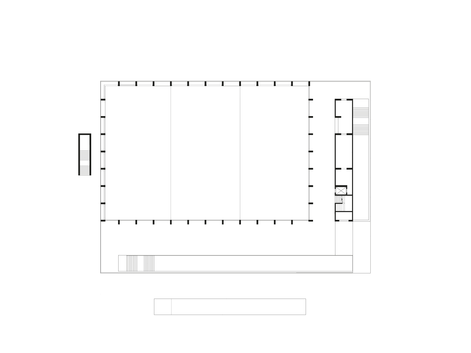 Prefabricated concrete columns form the building's structural framework and communicate with the nearby industrial zone. Skylights allow for zenithal light to reach the wood-clad hall and create a connection with the natural environment. The facade, also envisioned with prefabricated concrete elements, corresponds to the landscape and confirms the building’s identity as congruous with its environment.