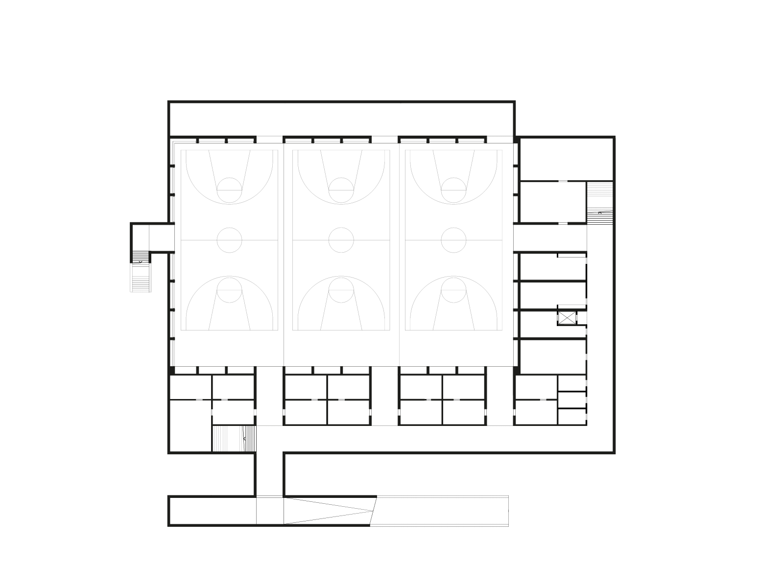 A proposed multi-purpose hall is ideally situated at the nexus between Wittenbach, an industrial area, and the surrounding natural setting. Designed for an architectural competition, the hall accommodates the varying functions required and is easily accessed by foot or bike.