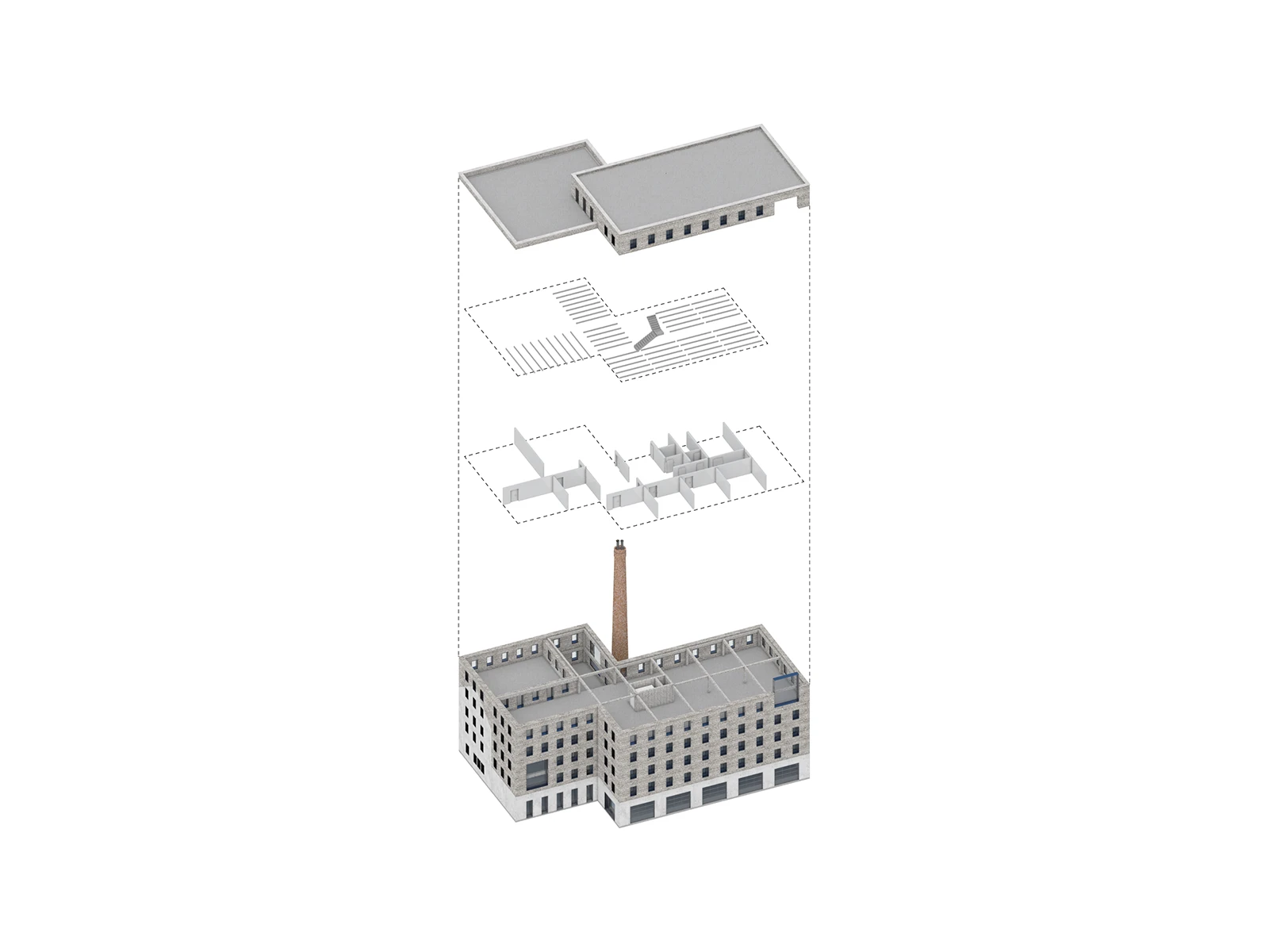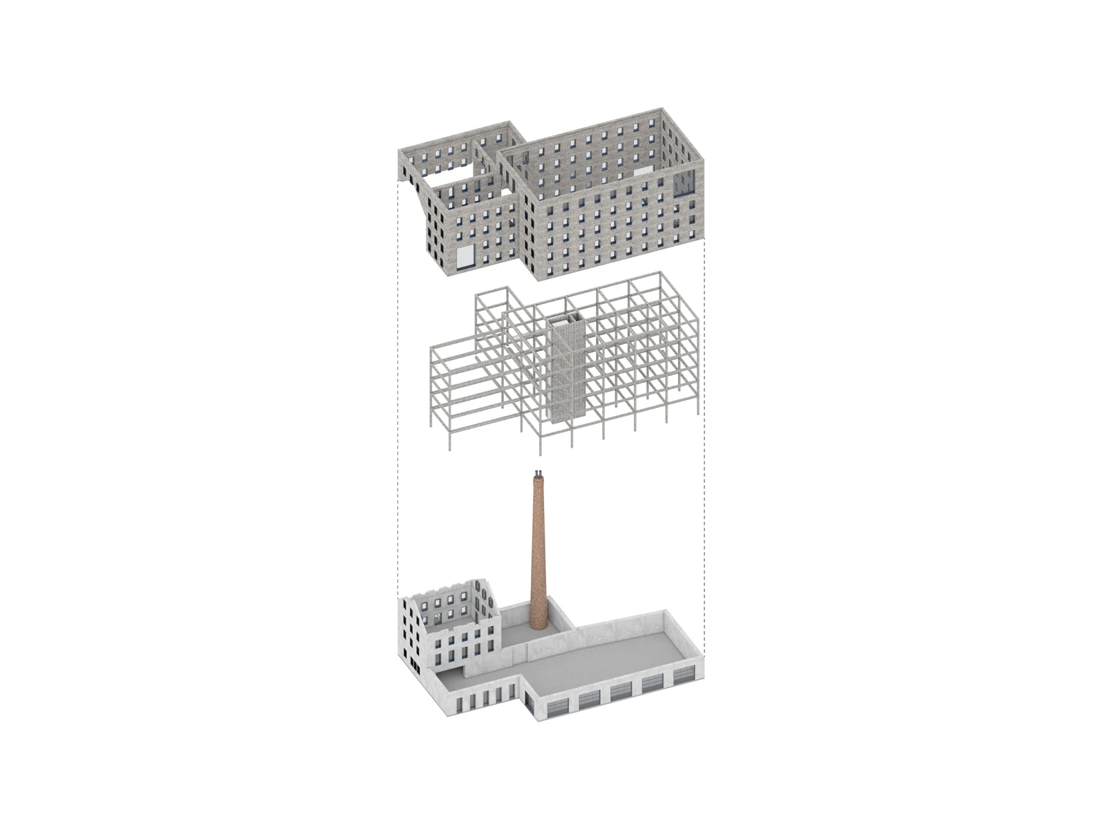 The site of the architectural competition is set on the grounds of the former Zellweger industrial campus, which currently houses an ensemble of buildings, including a former administration office from 1860, a heating plant with a listed chimney stack, and workshops to be redeveloped for commercial use.